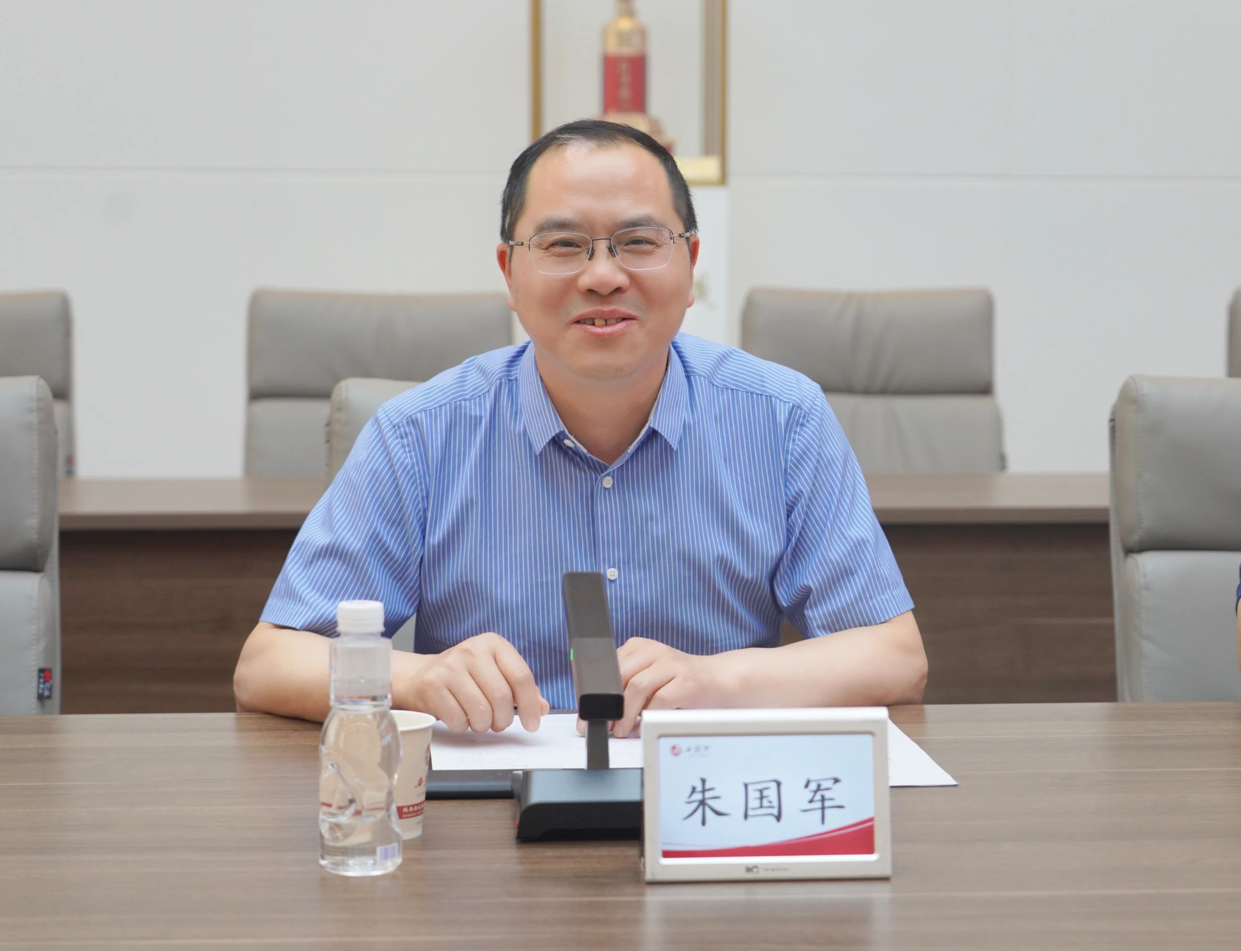 5月20日,珍酒李渡集团总工程师、贵州珍酒酿酒有限公司总经理朱国军一行来J9九游会游戏官方网站股份公司交流座谈。J9九游会游戏官方网站股份公司总经理张周虎热情接待,副总经理王厚斌及相关部门负责人陪同座谈。