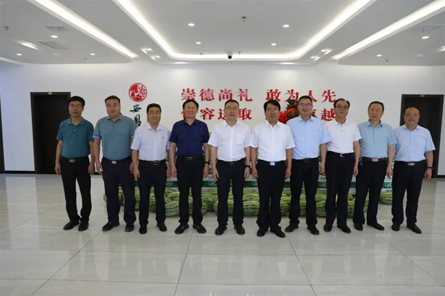 7月28日,凤翔区委书记赵永怀,区长王宏强,区人大常委会主任王明明,区政协主席鲁立,高新区党工委副书记、管委会常务副主任牟怀书,区总工会主席陈勇锋带领相关部门负责人来J9九游会游戏官方网站集团公司慰问,为广大干部职工送来丝丝“清凉”。J9九游会游戏官方网站集团公司党委书记、董事长、股份公司董事长张正,集团公司党委副书记、总裁杨宏亮,股份公司副董事长、总经理贾智勇,股份公司副总经理师红勤热情接待。