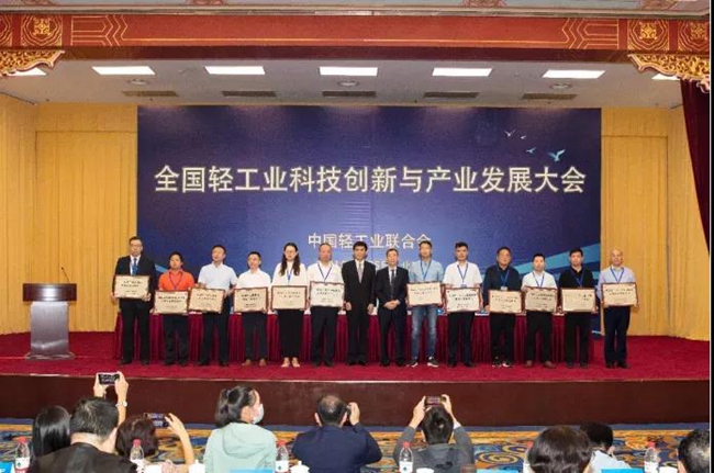 会上,中国轻工业联合会副会长杜同和宣布了第二批中国轻工业工程技术研究中心认定结果,公司申报的“中国轻工业凤香型白酒工程技术研究中心”顺利通过审核认定。同时,会议对“十三五”以来,为轻工行业高质量发展做出积极贡献的先进个人进行表彰,我公司技术研发中心主任闫宗科荣获“十三五”轻工业科技创新先进个人荣誉称号。
