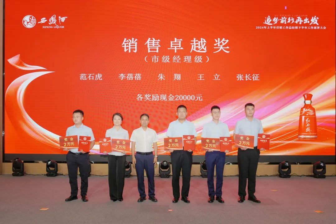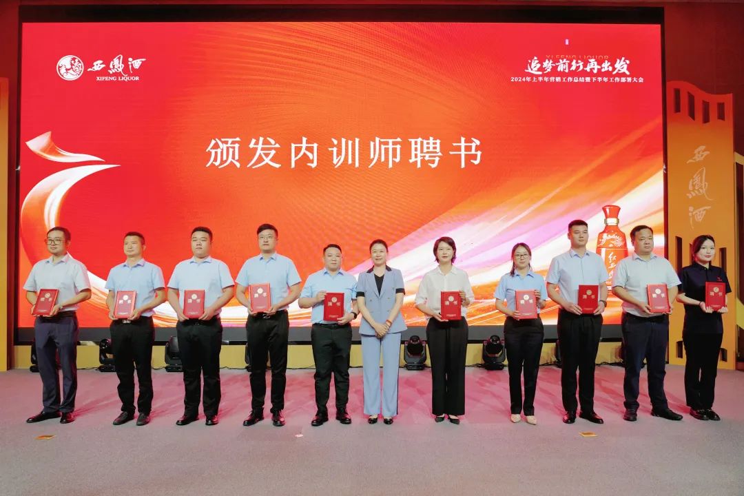郭拴新宣读《关于对2024年上半年营销工作先进个人进行表彰奖励的决定》,与会领导为受表彰的先进个人颁发了荣誉证书、奖金与内训师聘书。