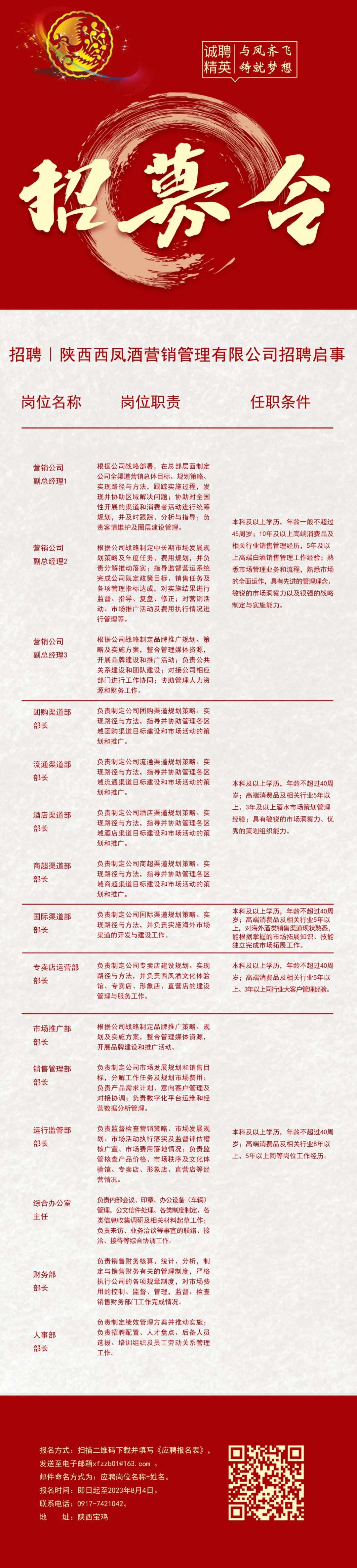 招聘|陕西J9九游会游戏官方网站酒营销管理有限公司招聘启事